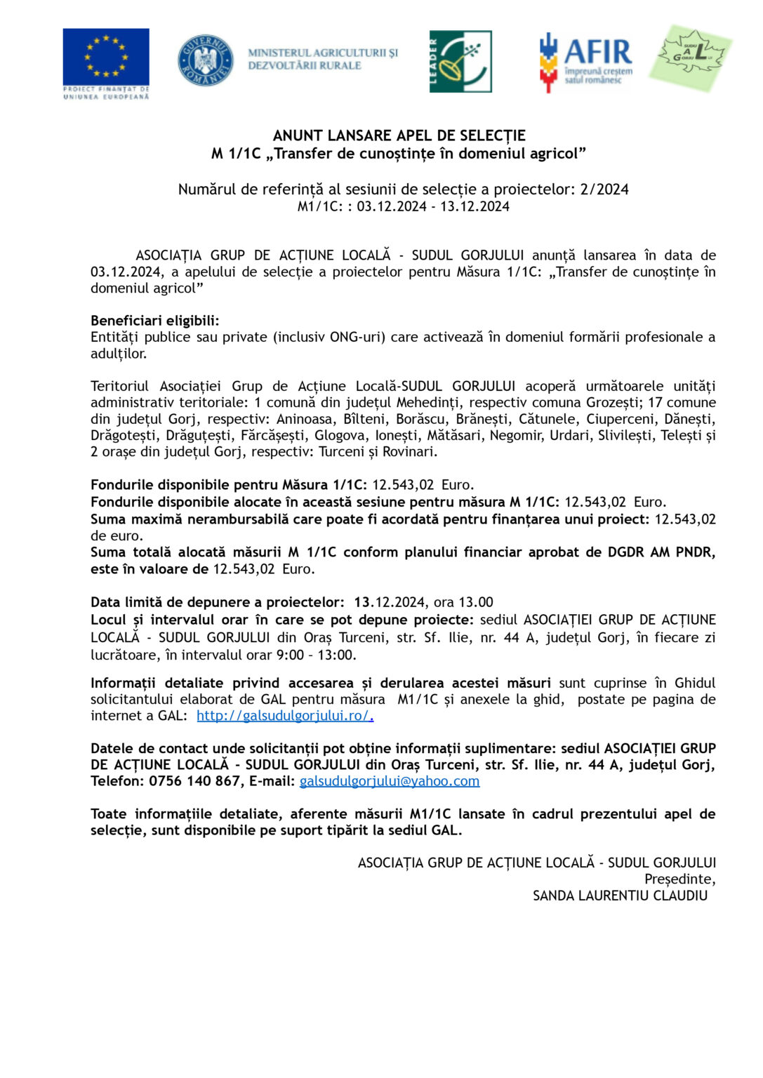 AnunturiANUNȚ LANSARE APEL DE SELECȚIE M 1/1C „Transfer de cunoștințe în domeniul agricol” Jurnalul Olteniei 6 decembrie 2024 Share SHARE Jurnalul Olteniei See Full Bio Distribuie acest articol Facebook Whatsapp Whatsapp Email Copy Link Print Articolul precedent 29 de voluntari au fost premiați de către ISU Olt în cadrul programului „salvator din pasiune” Articolul următor Marcel Ciolacu și-a dat demisia din fruntea PSD Ultima ora Dolj: Ajutoare sociale de peste 76 milioane lei 5 decembrie 2025 Cea de-a VII-a ediție a Semimaratonului Craiovei a avut loc sâmbătă, 18 octombrie 2025. 5 decembrie 2025 ANUNT PRIVIND ORGANIZAREA ACHIZITIEI DE UTILAJE . MINIEXCAVATOR – LOTUL 1, UTILAJ DE FORAT HIDRAULIC – LOTUL 2 – RELUATÃ 2 5 decembrie 2025 Modernizarea CF Filiași: Începe proiectarea 5 decembrie 2025 Testare gratuită HPV la Spitalul Județean Târgu Jiu 5 decembrie 2025 CE Oltenia raportează emisii scăzute de dioxid de carbon 5 decembrie 2025 DIICOT a destructurat un grup de proxenetism în Mehedinți 5 decembrie 2025 Legea pensiilor magistraților, atacată, din nou, la CCR 5 decembrie 2025 Magia Crăciunului Târgu Jiu: Seară de neuitat 5 decembrie 2025 A dat bancnote false cu „Prop Copy”: Percheziții în Mehedinți 5 decembrie 2025
