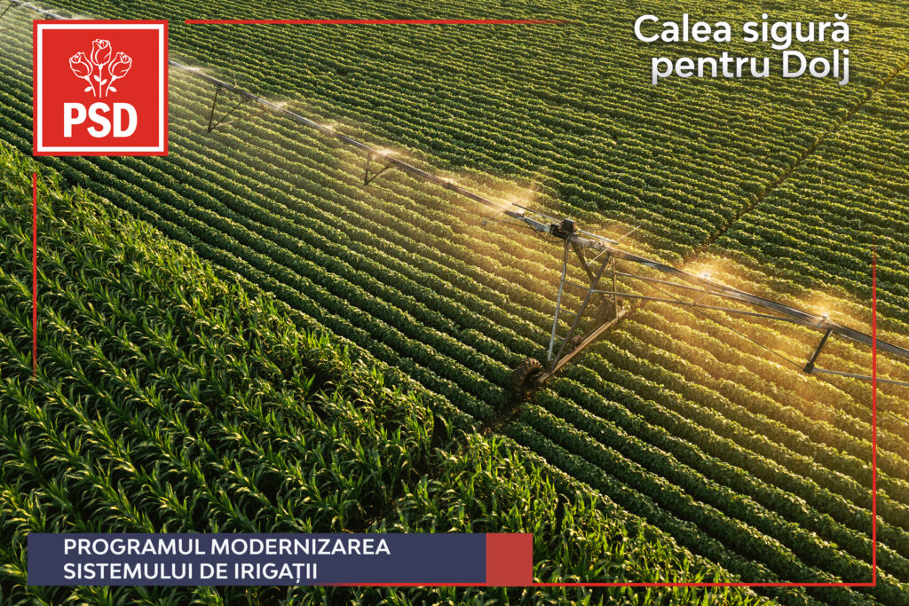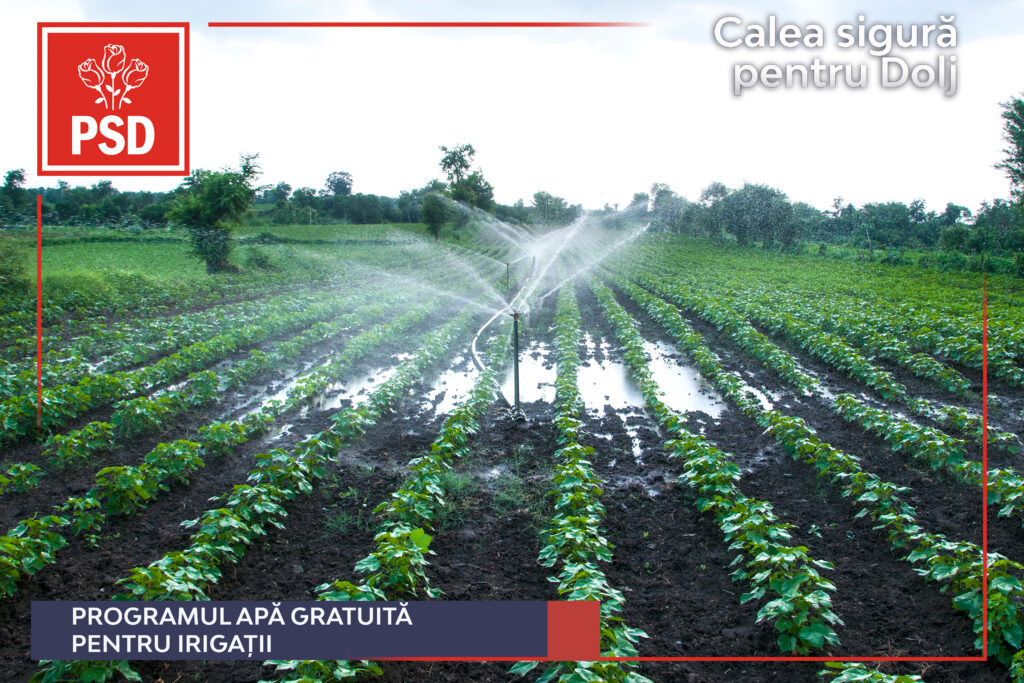 O altă acțiune importantă, pentru care vom aloca anual 100 de milioane de euro de la bugetul de stat, o constituie asigurarea apei gratuite și a subvenției de 50 % din costul energiei folosite la irigarea culturilor agricole“, a menționat candidata PSD Dolj pentru Camera Deputaților.