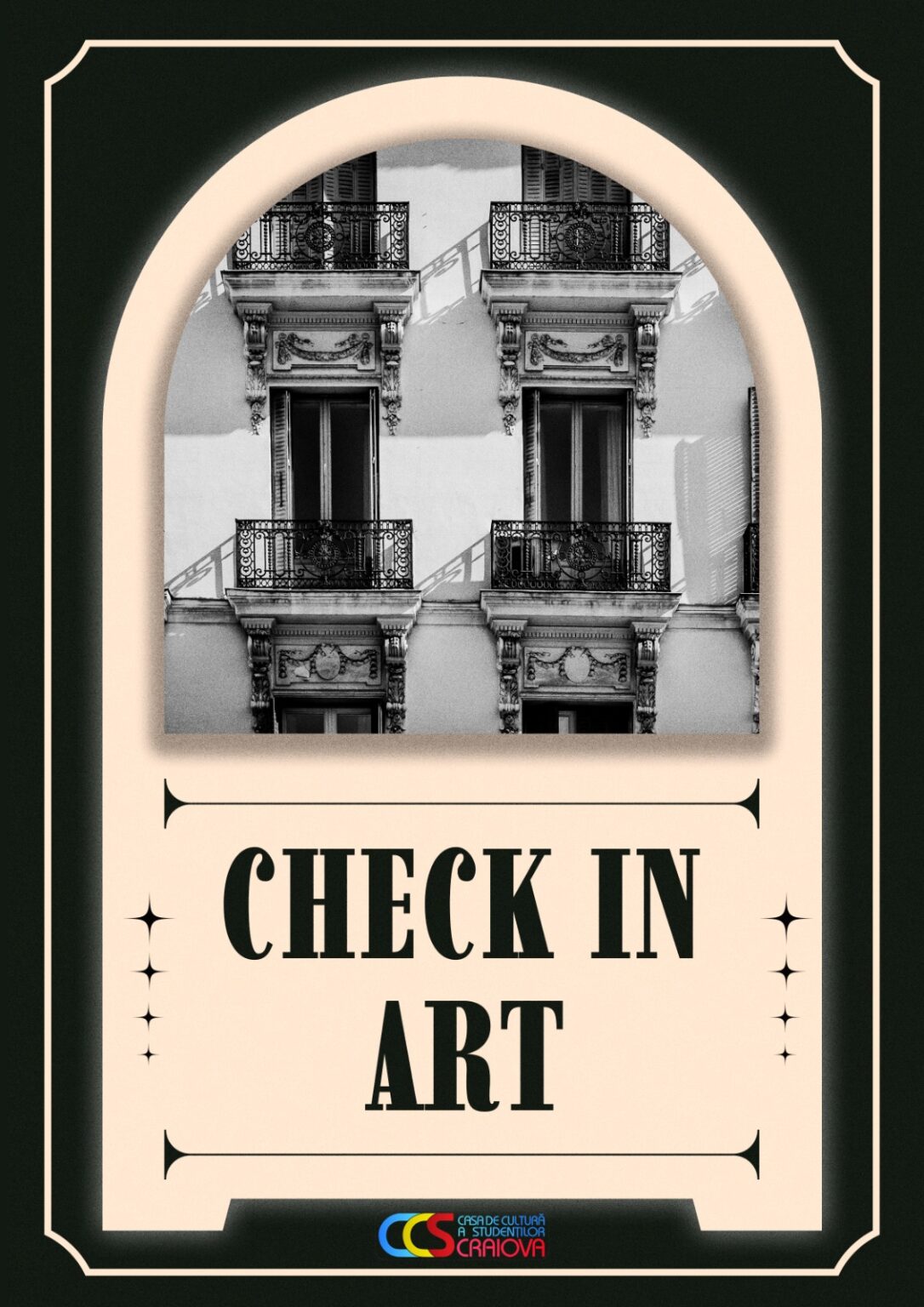 Casa de Cultură a Studenților Craiova are plăcerea de a anunța lansarea proiectului inovator „Check-in Art”, o inițiativă care aduce împreună creativitatea, tradiția și viziunea modernă. Hotelul imersiv al artelor, creat prin proiectul „Check-in Art”, va fi amenajat chiar în incinta Casei de Cultură a Studenților Craiova, transformând spațiul într-un hub al creativității și expresiei artistice.