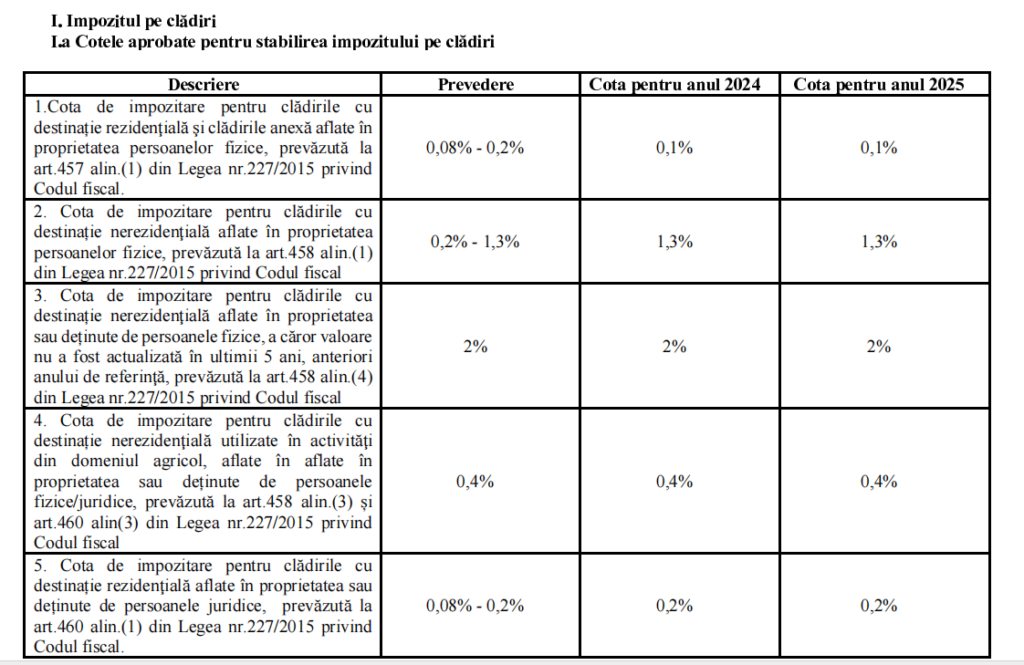 Iată câteva dintre taxele și impozitele locale pentru anul 2025: