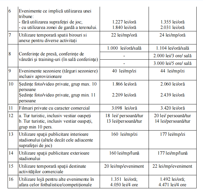 - – stabilirea unei taxe lunare de 70 lei reprezentând c/v abonament utilizare pista de atletism de concurs sau zona de încălzire (warm-up).