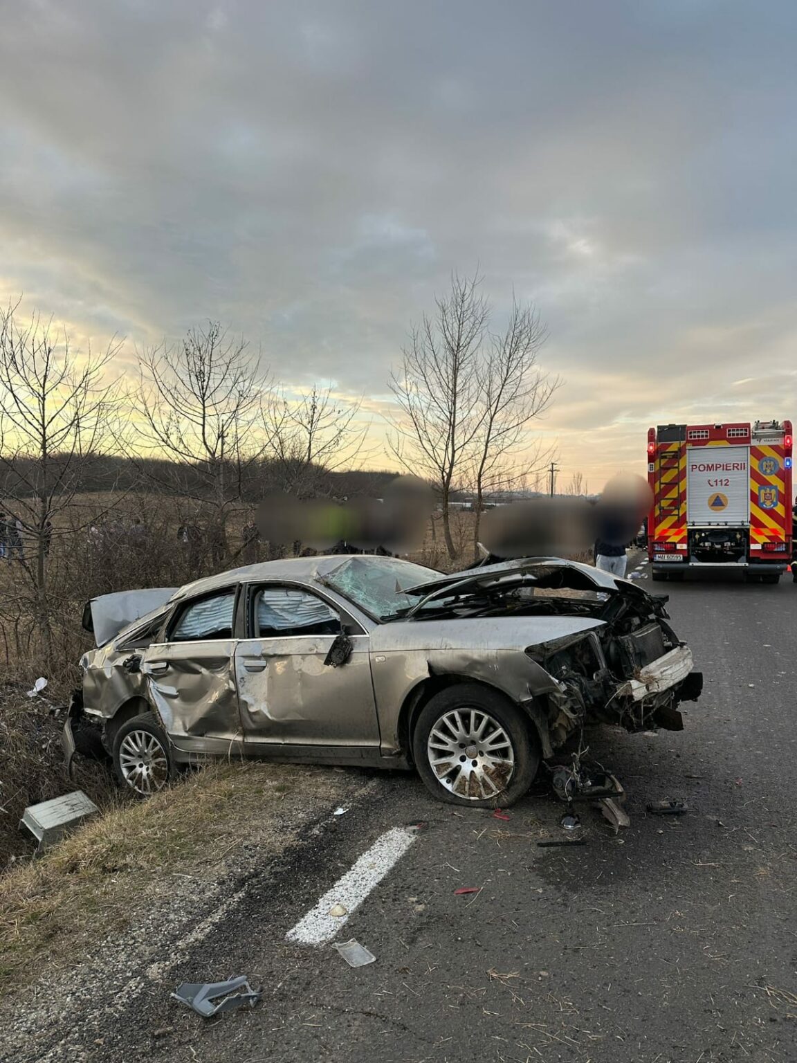 La fața locului, pompierii au constatat că în accident a fost implicat un singur autovehicul care a părăsit partea carosabilă și a lovit un cap de pod. De asemenea, în autoturism au fost identificate 3 victime. Una dintre victime, cu multiple traumatisme a fost preluată de către echipajul SAJ. La fața locului a fost alertat elicopterul SMURD.