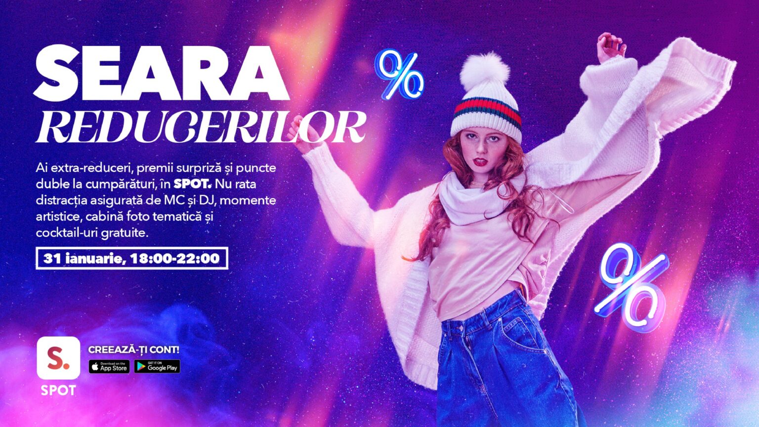 De asemenea, participanții care prezintă aplicația SPOT la Info Desk vor primi o brățară cu care vor beneficia gratuit de un cocktail, la barul special amenajat.