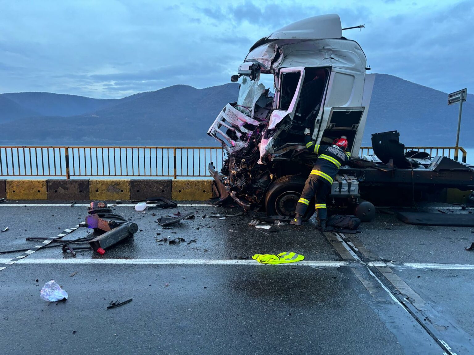 Update/ ISU Mehedinți a revenit cu informații legate de accidentul produs între Orșova și Gura Văii, precizând că au fost implicate două TIR-uri. Unul dintre șoferi a decedat.