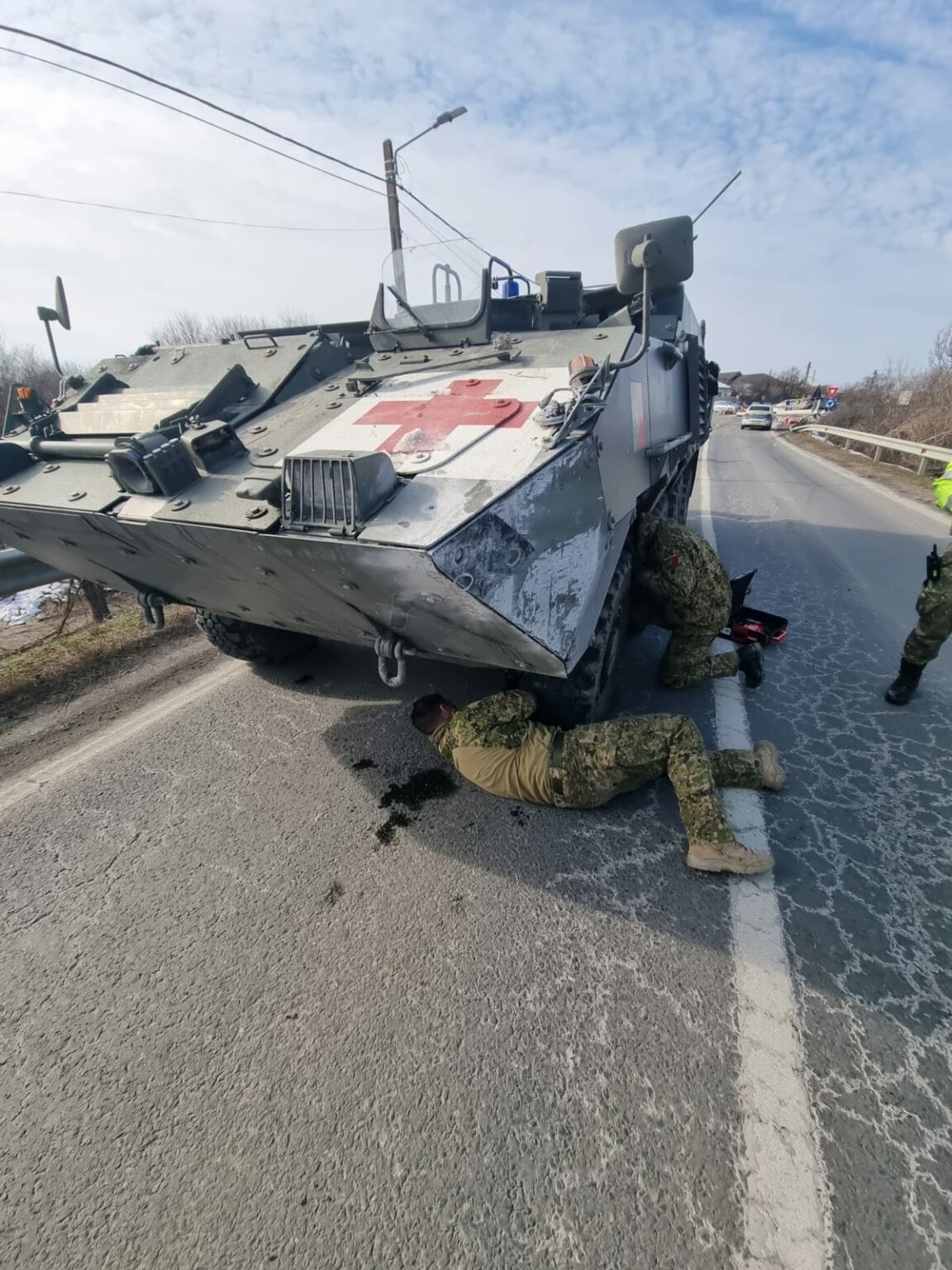 „La data de 22 februarie a.c., în jurul orei 14:00, polițiștii din cadrul Serviciului Rutier Olt s-au sesizat din oficiu cu privire la faptul că, pe Drumul Național 64, în localitatea Găneasa, a avut loc un eveniment rutier. Din primele verificări, polițiștii au stabilit faptul că un transportor militar blindat condus de către o tânără de 21 de ani, cetățean portughez, din cauze ce urmează a fi stabilite în cursul cercetărilor, ar fi intrat în coliziune cu un stâlp de beton de pe marginea părții carosabile.În urma evenimentului rutier nu au existat victime omenești, fiind produse doar pagube materiale. Conducătorul auto a fost testat cu aparatul etilometru, rezultatul fiind negativ. În cauză, polițiștii continuă cercetările pentru stabilirea situației de fapt, urmând a fi dispuse măsurile legale.”- IPJ Olt
