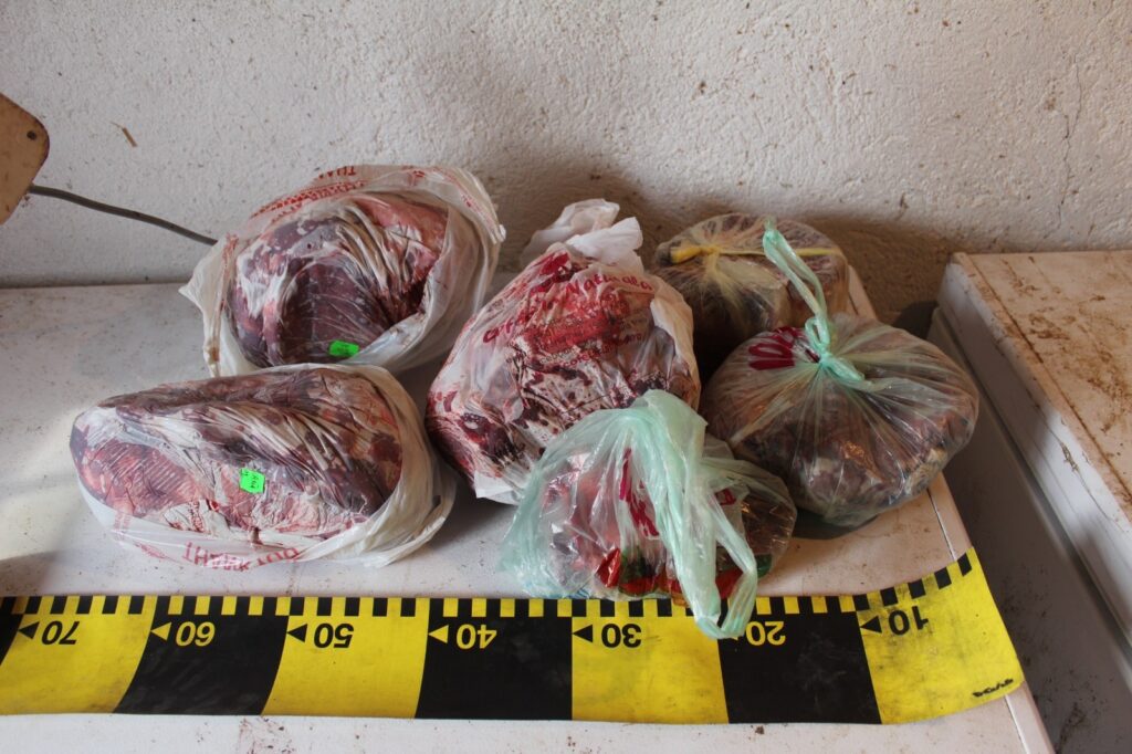 În urma perchezițiilor, au fost ridicate, în vederea continuării cercetărilor, 8 arme de vânătoare deținute legal, 85 de cartușe de vânătoare, de diferite calibre, 85 de kilograme de carne de vânat din specia mistreț, pielea, membrele inferioare și capul unui exemplar din specia mistreț, o piele de capră neagră, fără documente legale de proveniență, o bucată de corn de cerb comun, un aparat de termoviziune, 2 lanterne, articole de vestimentație și încălțăminte. În fapt, în luna februarie, polițiștii s-au sesizat din oficiu, cu privire la faptul că, în aceeași lună, s-a desfășurat o acțiune de braconaj, pe raza fondului cinegetic Bumbești, fiind împușcate două exemplare, din specia mistreț.