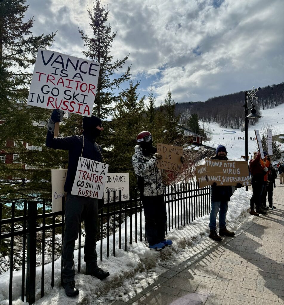 JD Vance, care și-a adus familia la Sugarbush Resort din Warren, Vermont, a fost întâmpinat de protestatari care aveau pancarte în care-l făceau „nazist” și-i sugerau să „meargă la schi în Rusia”, scrie hotnews.ro care citează CBS și Fox News.