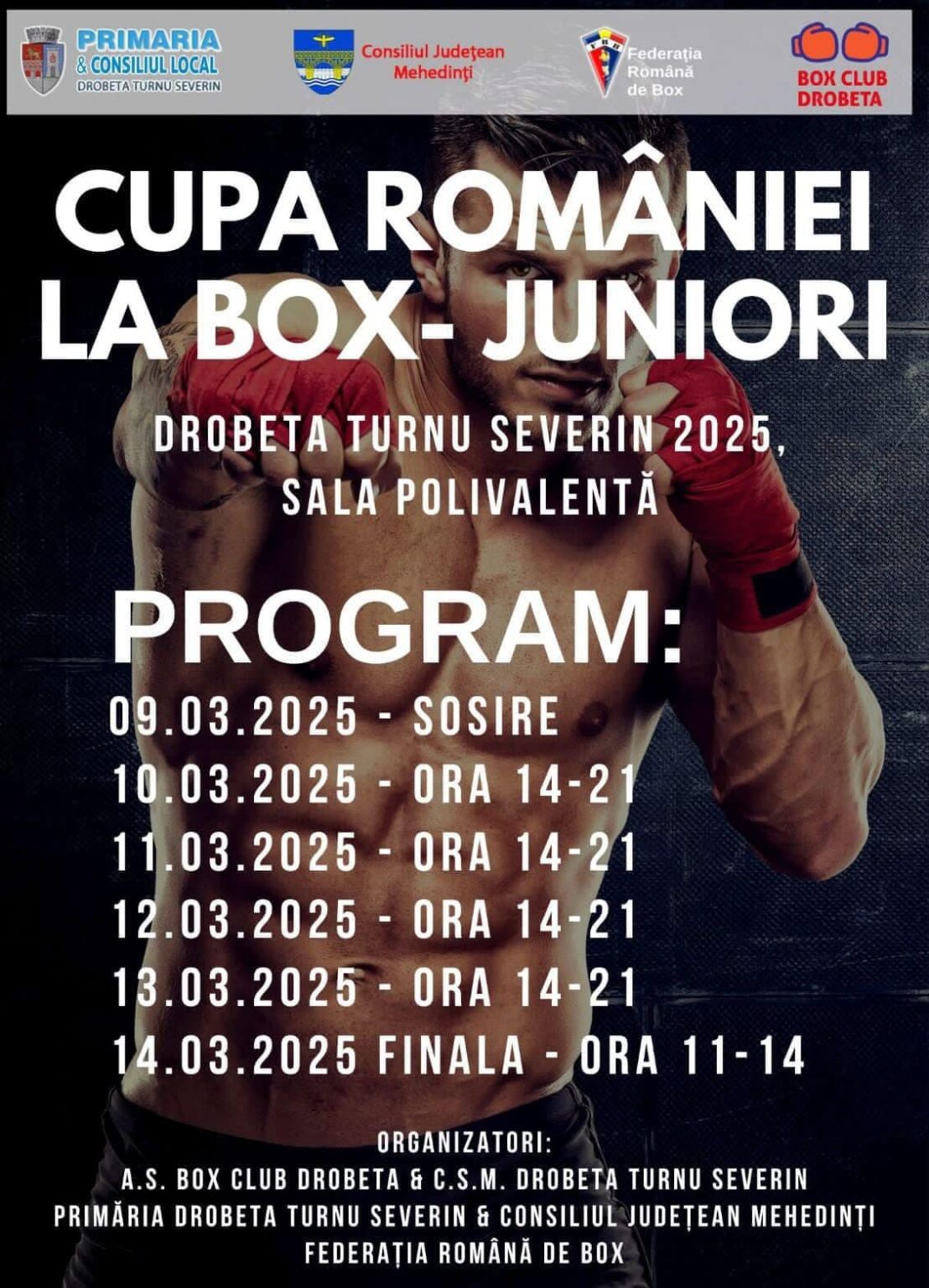 „Drobeta-Turnu Severin găzduiește din nou Cupa României la Box pentru Juniori! Orașul nostru devine, în perioada 10-14 martie, capitala boxului juvenil din România! Peste 200 de tineri sportivi din întreaga țară, alături de antrenorii lor, vor concura în cadrul prestigioasei competiții „Cupa României de Juniori – Box 2025”, un eveniment de anvergură organizat pentru a doua oară consecutiv în municipiul nostru”, potrivit municipalității severinene.