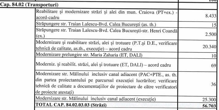 Străzile din oraș sunt în atenția autorităților locale și în anul 2025. Recent, Primăria Craiova a lansat în consultare publică proiectul bugetului de venituri și cheltuieli. La capitolul transporturi a fost atribuită o sumă totală, orientativă, de 56.703.000 de lei.