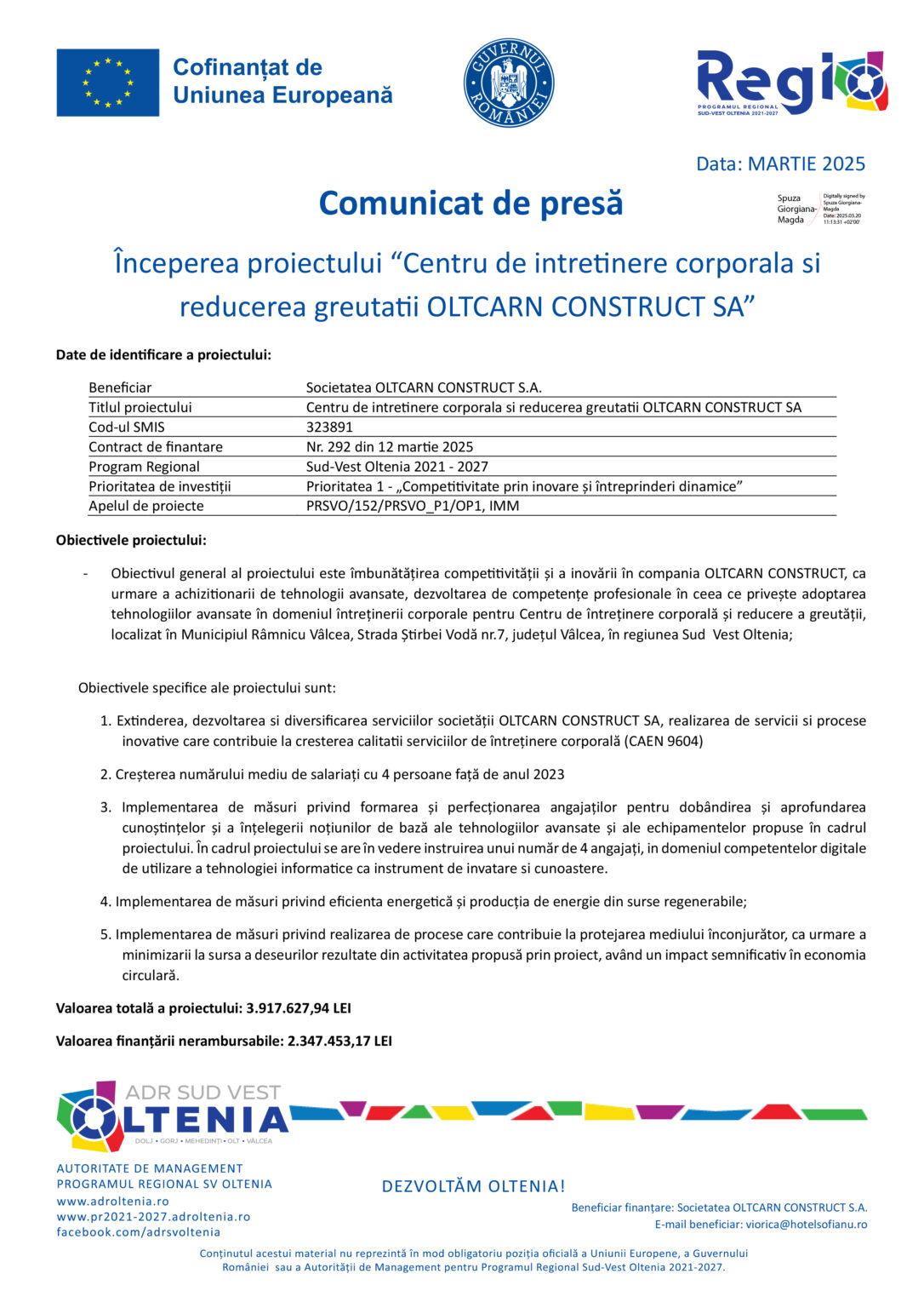 AnunturiComunicat de presă – Începerea proiectului „Centru de întreținere corporală și reducerea greutății OLTCARN Construct SA” Jurnalul Olteniei 31 martie 2025 Share SHARE Jurnalul Olteniei See Full Bio Distribuie acest articol Facebook Whatsapp Whatsapp Email Copy Link Print Articolul precedent Material didactic de ultimă generație în domeniul auto, donat Liceului Tehnologic ,,General Magheru” Articolul următor Crin Antonescu: Problema cu Victor Ponta nu este că e trădător, ci că e travestit Ultima ora Zilele Colindului în România: Tradiția care unește țara 6 decembrie 2025 Se știe grupa în care poate juca România la Cupa Mondială din 2026 5 decembrie 2025 Dolj: Ajutoare sociale de peste 76 milioane lei 5 decembrie 2025 Cea de-a VII-a ediție a Semimaratonului Craiovei a avut loc sâmbătă, 18 octombrie 2025. 5 decembrie 2025 ANUNT PRIVIND ORGANIZAREA ACHIZITIEI DE UTILAJE . MINIEXCAVATOR – LOTUL 1, UTILAJ DE FORAT HIDRAULIC – LOTUL 2 – RELUATÃ 2 5 decembrie 2025 Modernizarea CF Filiași: Începe proiectarea 5 decembrie 2025 Testare gratuită HPV la Spitalul Județean Târgu Jiu 5 decembrie 2025 CE Oltenia raportează emisii scăzute de dioxid de carbon 5 decembrie 2025 DIICOT a destructurat un grup de proxenetism în Mehedinți 5 decembrie 2025 Legea pensiilor magistraților, atacată, din nou, la CCR 5 decembrie 2025