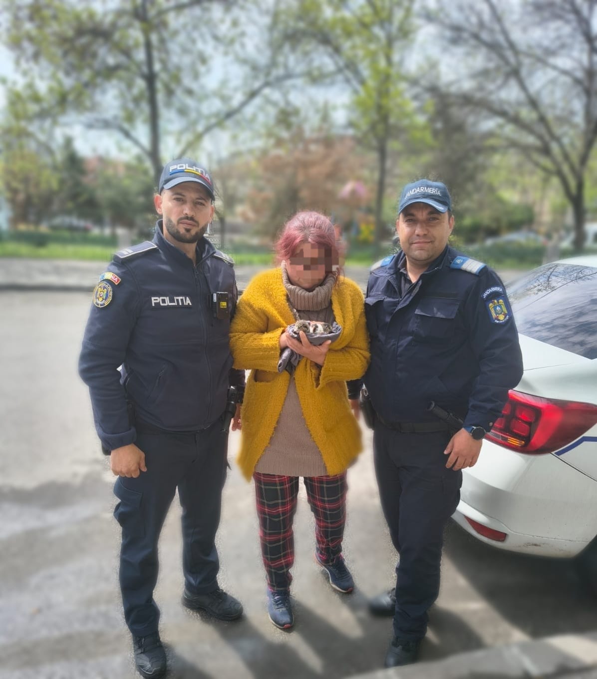 „Astăzi, Cătălin, polițist în cadrul Secției 1 Poliţie Craiova și Mihai, jandarm în cadrul Inspectoratului de Jandarmi Judeţean Dolj, în timp ce patrulau pe strada Madona Dudu, din Craiova, au găsit trei pisicuțe abandonate.