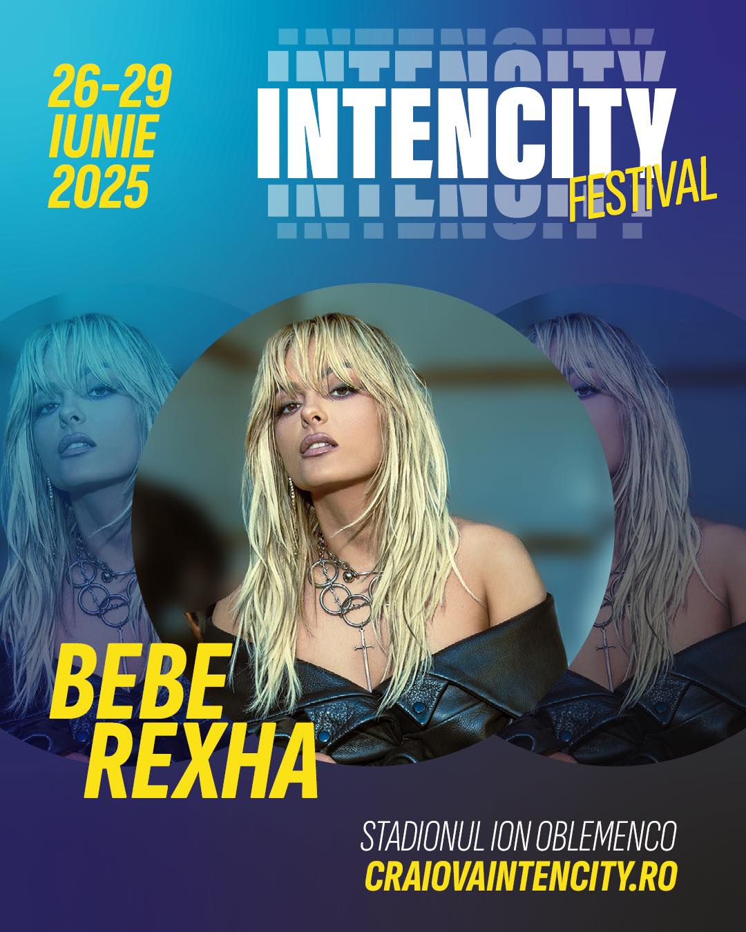„Una dintre cele mai puternice voci ale muzicii pop internaționale, Bebe Rexha va urca pe scena principală a Festivalului IntenCity, eveniment care se va desfășura la Craiova, în perioada 26-29 iunie 2025.