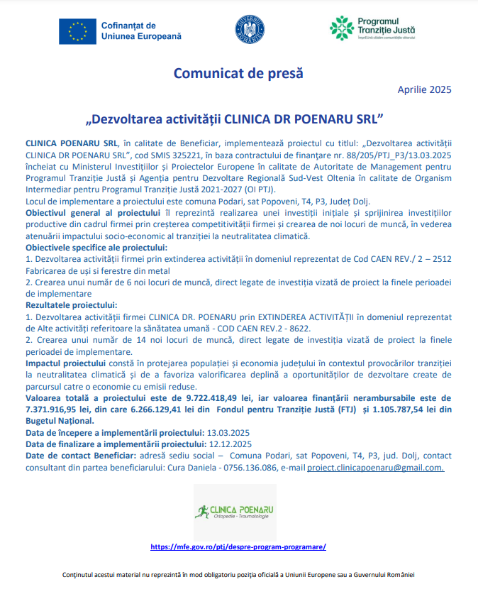 Dezvoltarea activității CLINICA DR POENARU SRL