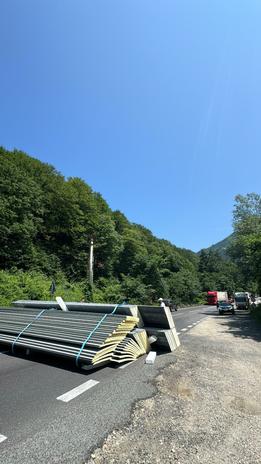 Un autocamion care transporta marfă s-a răsturnat pe carosabil, blocând parțial circulația și îngreunând traficul în zonă. Conducătorul vehiculului a fost testat cu aparatul etilotest, rezultatul fiind negativ, nefiind sub influența alcoolului.