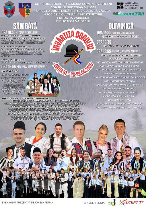 Invitați speciali: Ansamblul Aromân Dor din Tulcea și Formația Potaissa din Turda. O sărbătoare a identității și a comunității Festivalul „Învârtita Dorului” nu este doar un spectacol, ci o reconectare profundă cu rădăcinile pastorale ale zonei Vaideeni, o punte între generații și un prilej de reafirmare a identității locale.