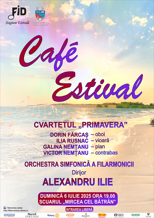 Duminică, 6 iulie 2025, de la ora 19:00, Scuarul „Mircea cel Bătrân” din Râmnicu Vâlcea devine scenă sub cerul liber pentru un nou eveniment muzical rafinat: CAFÉ ESTIVAL. Un concept elegant de vară, care aduce muzica clasică mai aproape de oameni, într-un cadru relaxat și accesibil tuturor. Evenimentul este organizat de Filarmonica „Ion Dumitrescu”, iar intrarea este liberă.