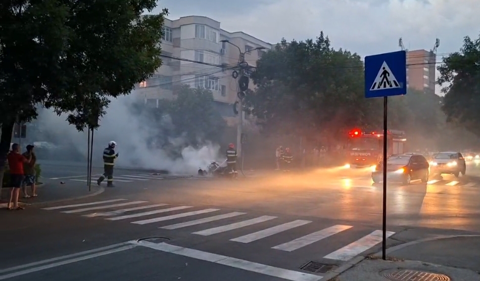 Un triciclu de tip ATV a luat foc pe strada Doljului din Craiova. S-a întâmplat chiar în mijlocul intersecției. Pentru că există riscul ca flăcările să se extindă la mașini sau clădiri din apropiere, pompierii au intervenit rapid.