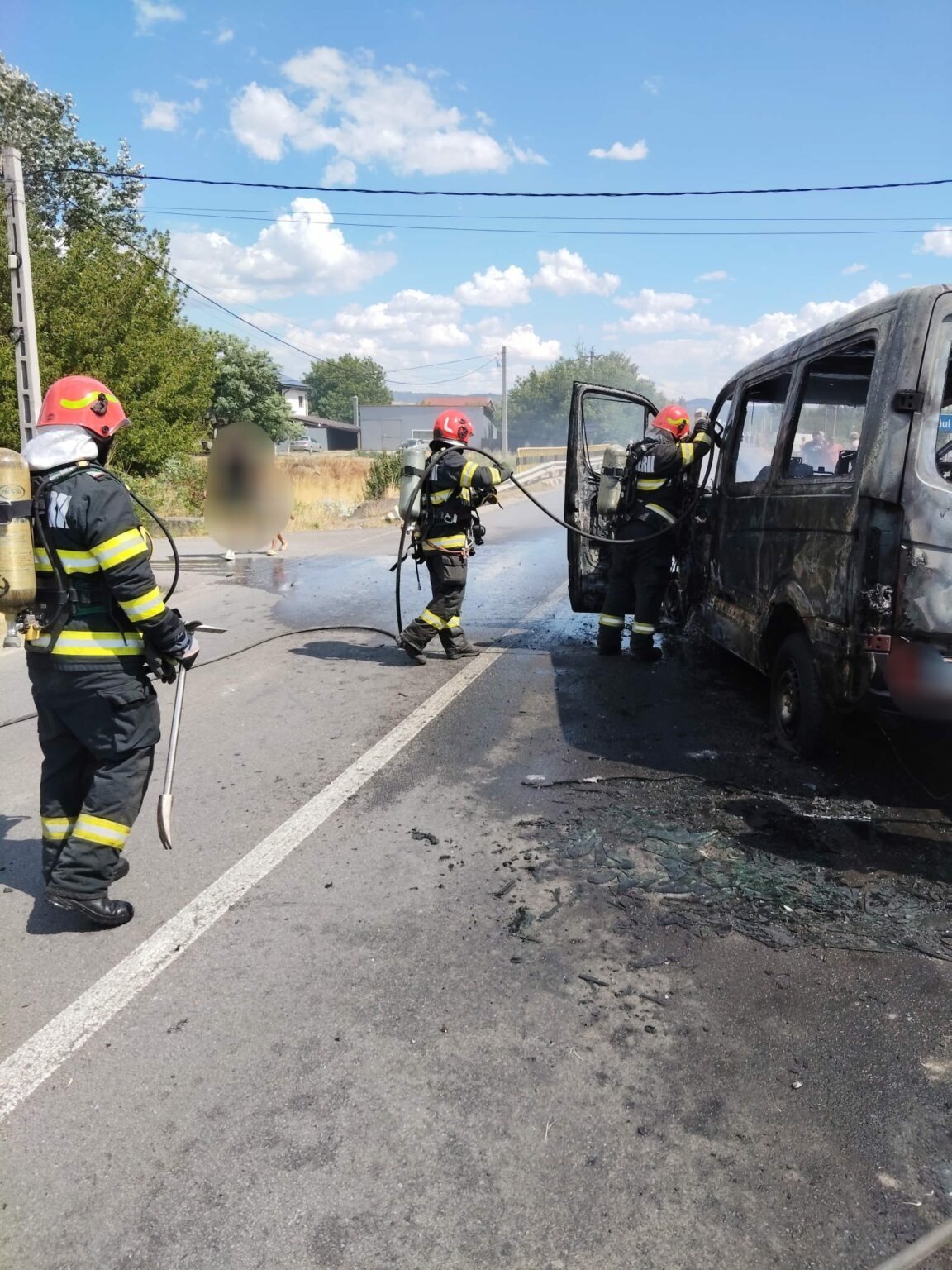 La sosirea pompierilor, persoanele aflate în interior se autoevacuaseră, iar incendiul se manifesta generalizat la întregul autovehicul. Acesta a fost lichidat în limitele găsite, microbuzul fiind distrus în proporție de 80%. Din fericire, nu au fost înregistrate victime.” -ISU Mehedinți
