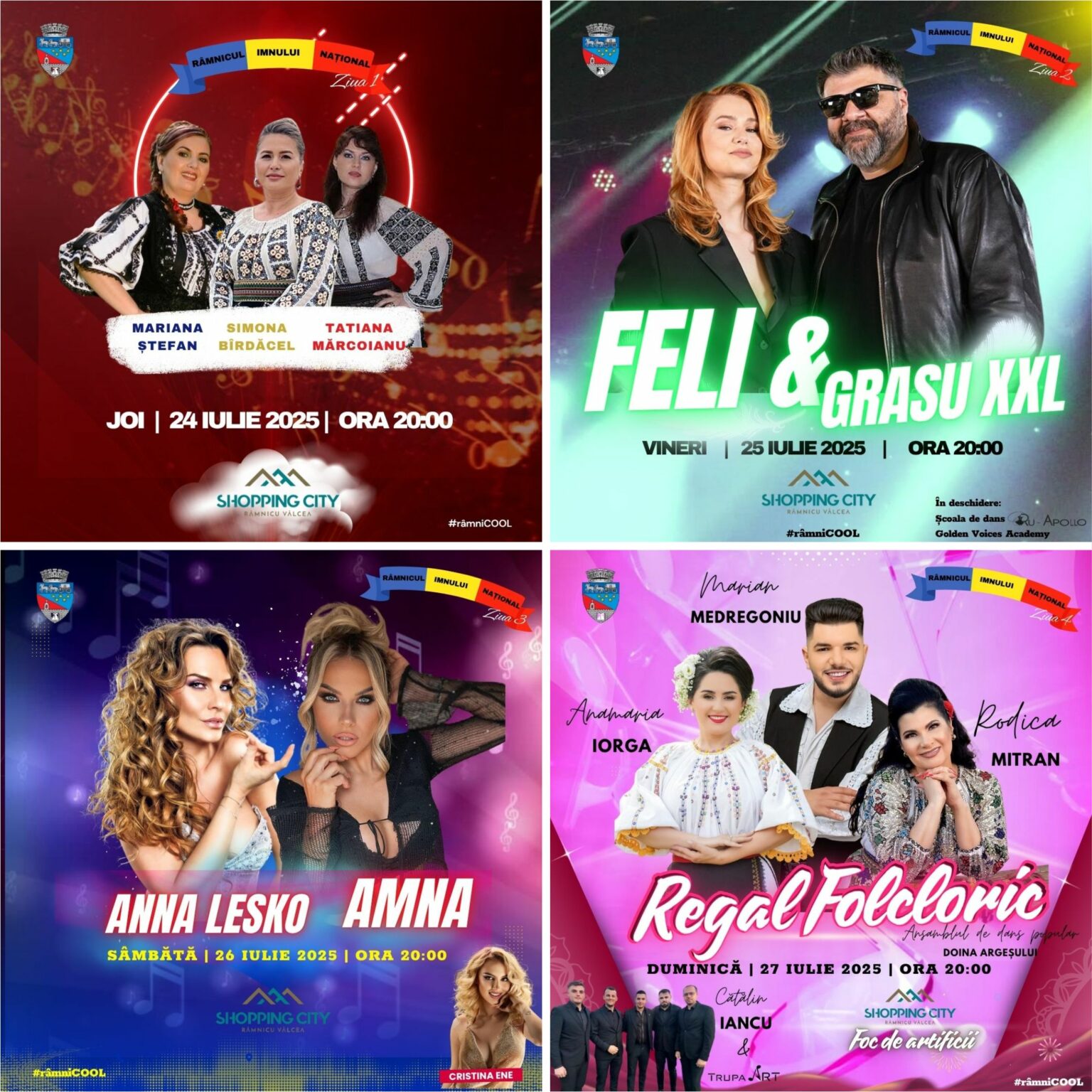 19:30 – 23:00 • Shopping City Mall: „Concert Tinere Talente Folclorice” – Alessia Rizoiu, Medeea Dirinea, Sofia & Teodora Oprița, Ștefania Diță, Delia Proteasa, Daria Ștefan, Ștefan Vâlcu / ”Regal Folcloric” cu Marian Medregoniu, Rodica Mitran, Anamaria Iorga & Trupa ART, Cătălin Iancu și Ansamblul Doina Argeșului