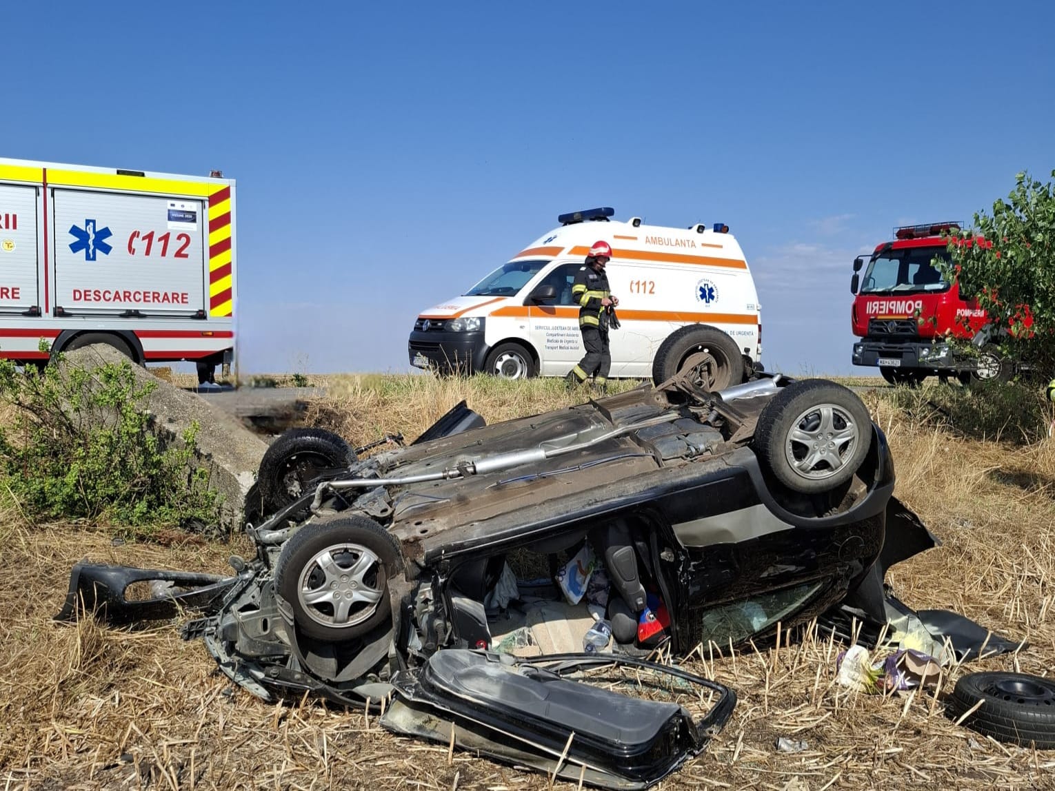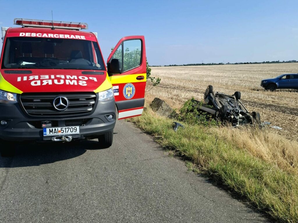 Accident mortal în comuna Seaca (Olt): femeie decedată, bărbat rănit grav după ce mașina s-a răsturnat (FOTO)