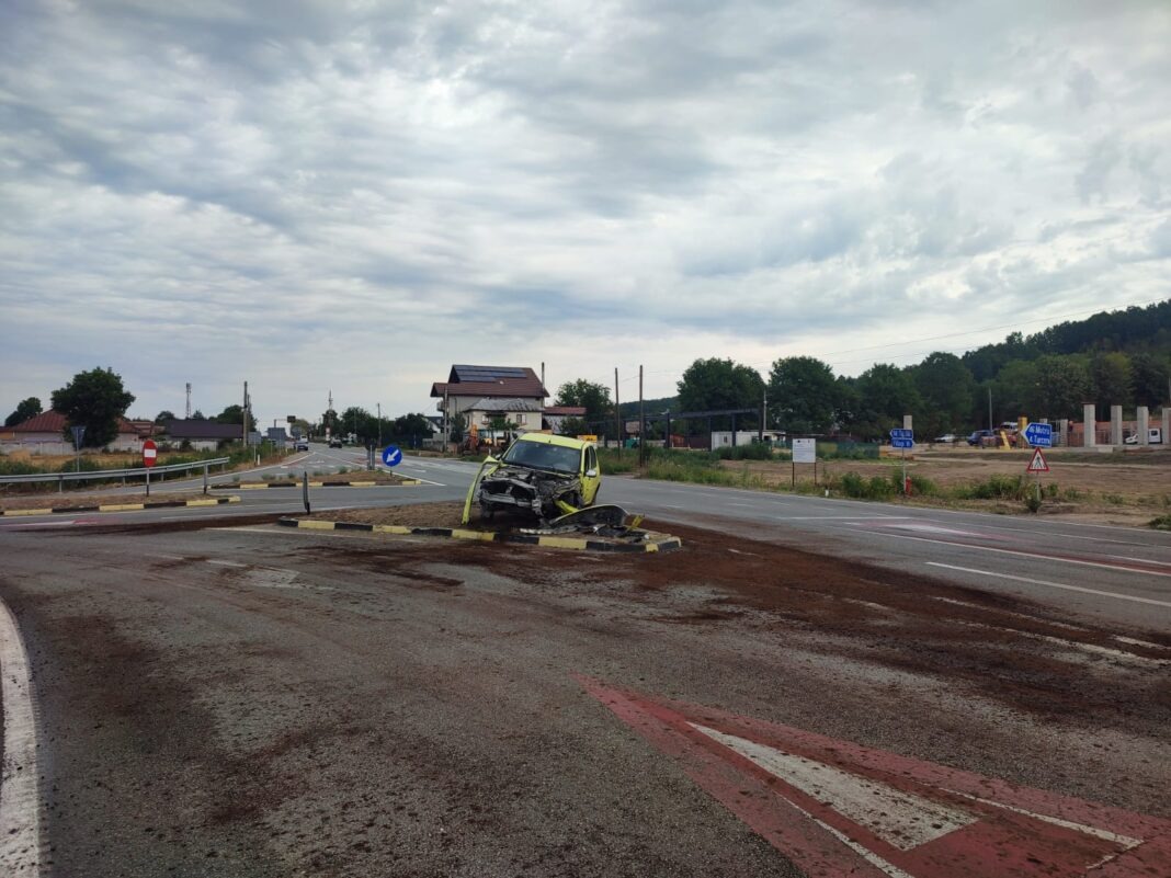 Impactul a fost extrem de puternic, autoturismul fiind grav avariat, iar șoferul a suferit multiple contuzii.