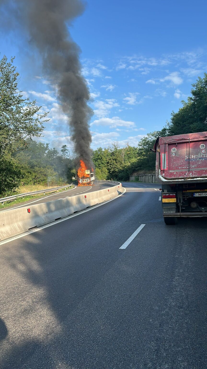 Trafic blocat pe DN 7. Un autocamion a luat foc