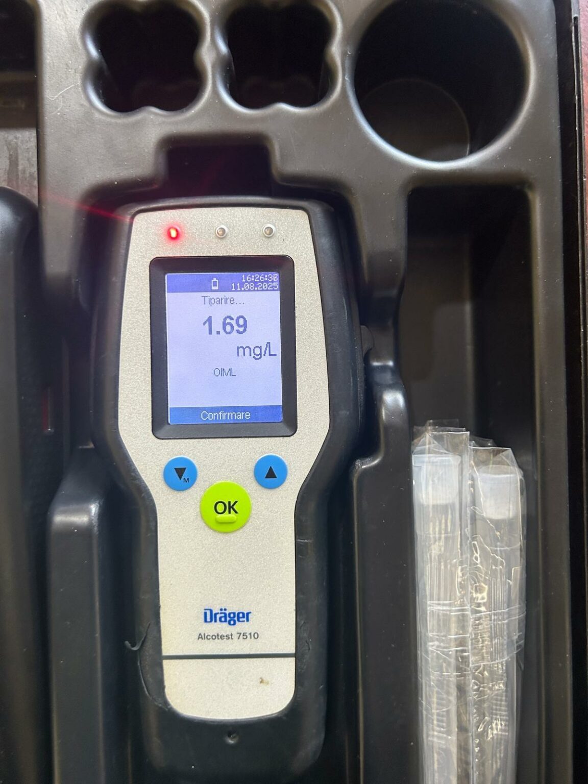 Testul cu aparatul etilotest a indicat 1,69 mg/l alcool pur în aerul expirat, iar analizele de laborator au confirmat o alcoolemie uriașă: 3,94 g/l alcool pur în sânge.