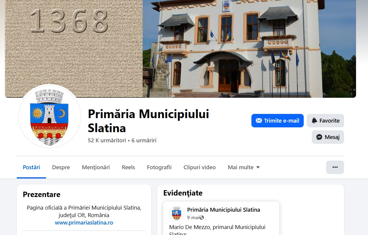 Primăria Slatina plătește 15.000 de euro pentru promovarea pe Facebook. Contract direct către o firmă din Icoana