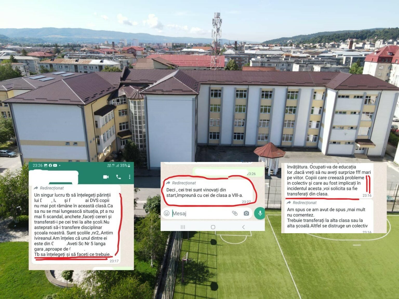 Un singur lucru tb să înțelegeți părinții lui D…., I…. și P… că ai DVS copii nu mai pot rămâne în această clasă.Ca sa nu se mai lungească situația, pt a nu mai fi scandal, anchete ,faceți cereri și transferati-i pe cei trei la alte școli.Nu asteprati să-i transfere disciplinar școala noastră. Sunt școlile ,nr2,.Antim Ivireanul.Am înțeles că unul dintre ei este din G……Aveti Sc Nr 5 langa gara ,aproape de G……
