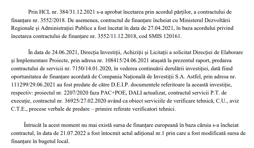 Pentru justificarea diferenței de valoare între documentația faza DALI și documentația întocmită la faza PAC, proiectantul a transmis memoriu justificativ, prin care explicat majorarea valorii investiției. Este vorba despre aceleași explicații din 2020.
