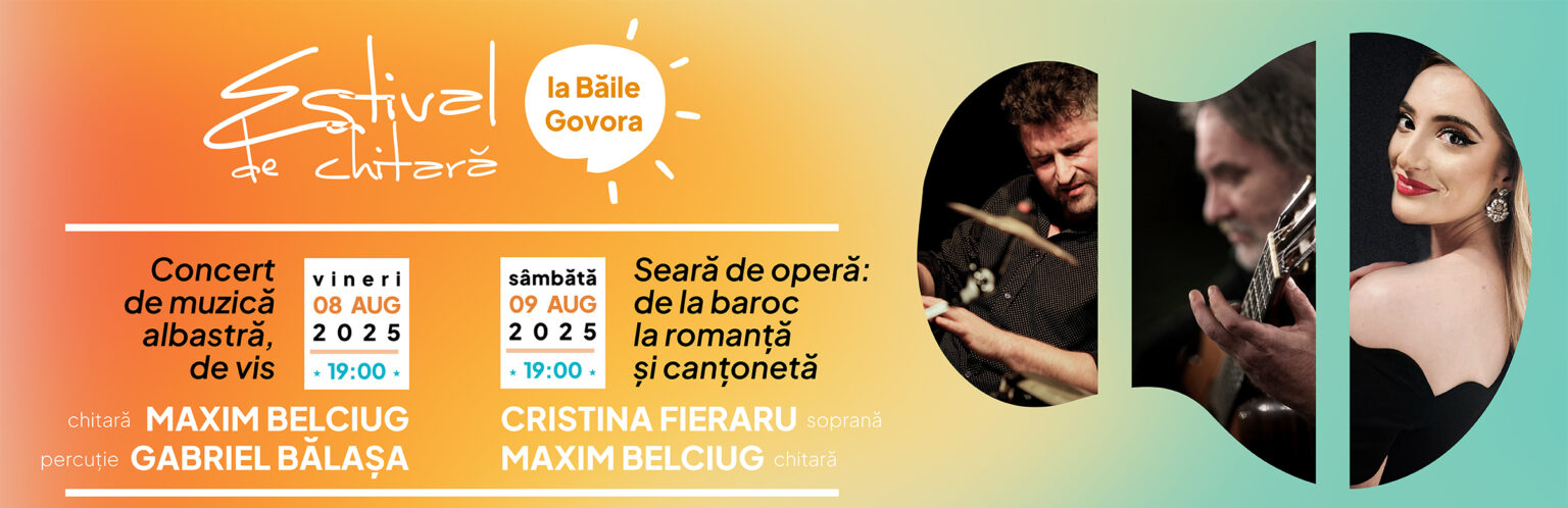 În zilele de 8 și 9 august 2025, Casino Govora găzduiește o nouă ediție a Estivalului de Chitară, un mini-festival de weekend care își propune să ofere localnicilor și turiștilor prilejul de a gusta întreaga magie a muzicii pentru chitară. Proiectul propune 2 seri de concerte, cu artiști fabuloși și un program variat, gândit anume pentru a umple inimile de bucurie.