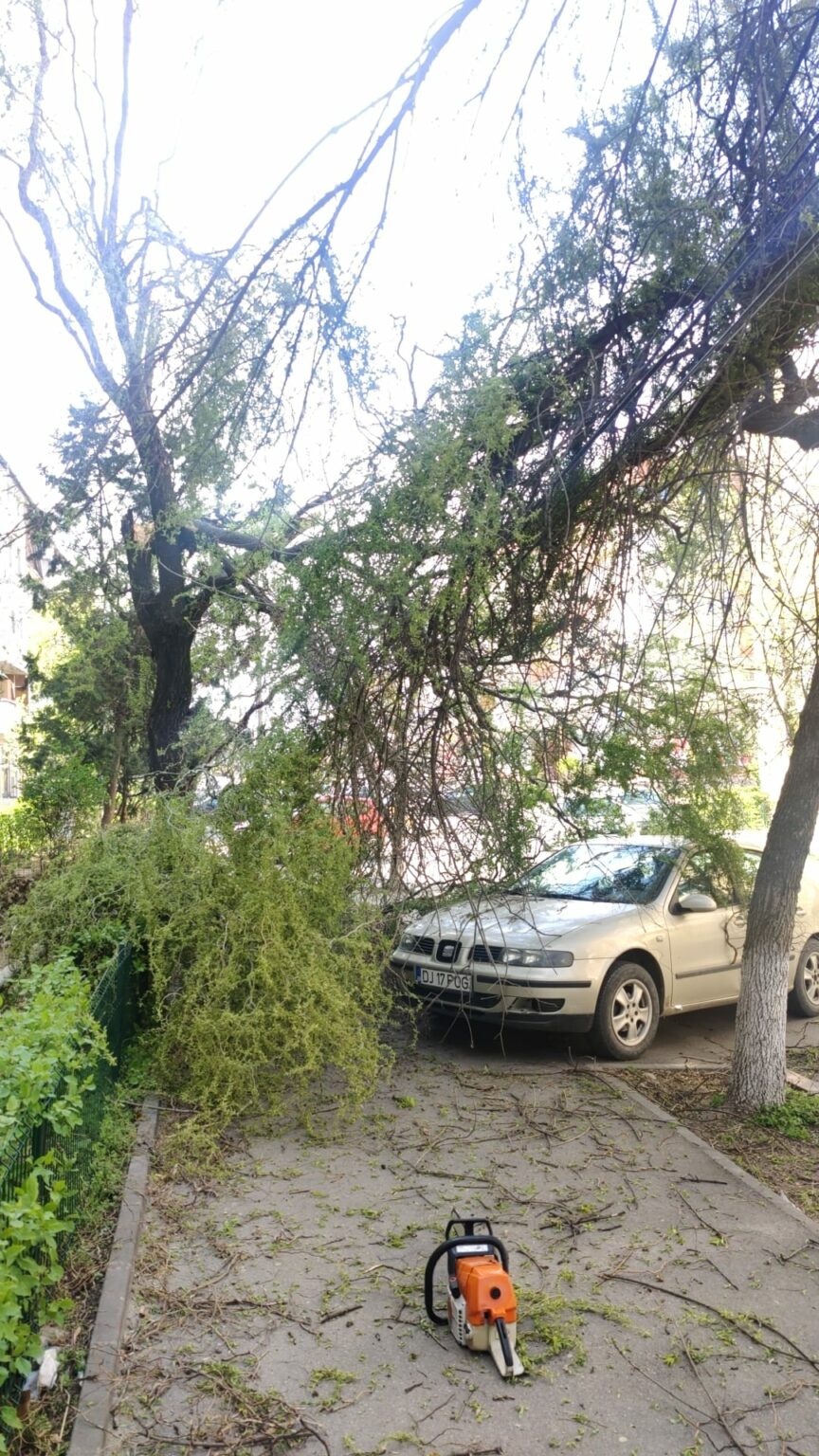 Pe strada Împăratul Traian, din Craiova, un arbore a căzut peste o mașină.
