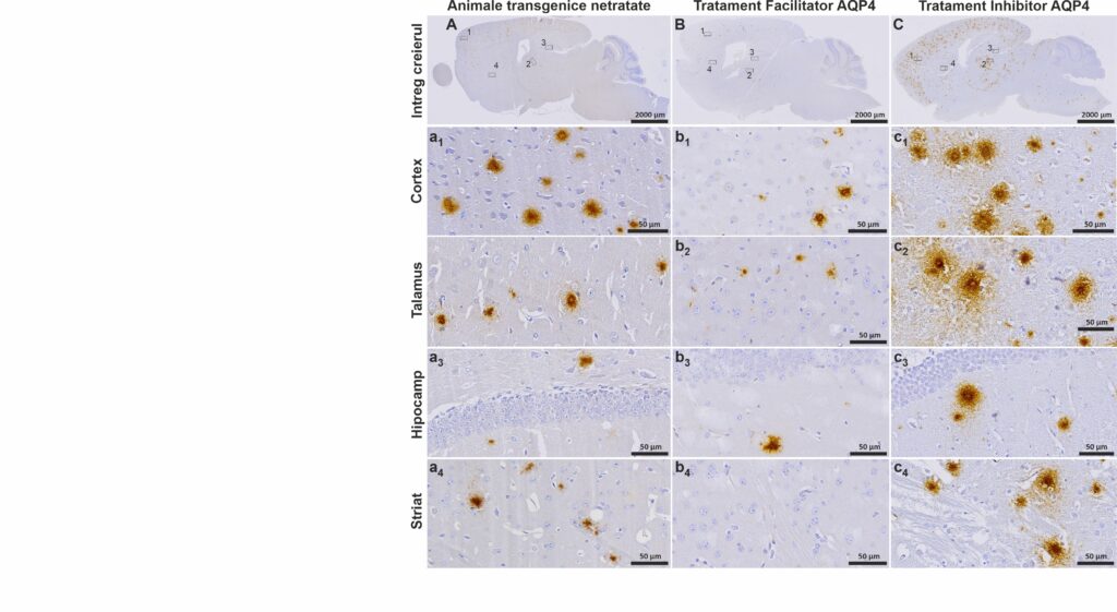 Tratamentul cu inhibitorul de AQP4 duce la o scădere importantă a numărului și dimensiunilor plăcilor de amiloid din creierul animalelor tratate în toate zonele anatomice studiate coloana din mijloc