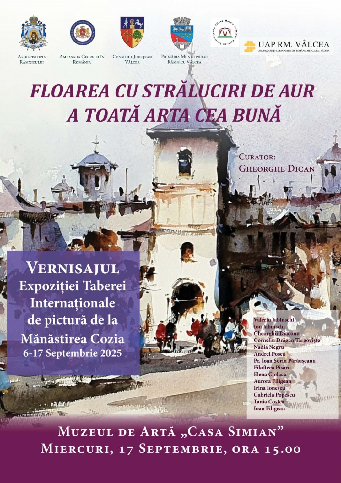 Râmnicu Vâlcea devine miercuri, 17 septembrie, punct de întâlnire pentru iubitorii de artă și spiritualitate. La Muzeul de Artă „Casa Simian”, de la ora 15.00, va avea loc vernisajul expoziției „Floarea cu străluciri de aur a toată arta cea bună”, un eveniment organizat cu binecuvântarea Înaltpreasfințitului Părinte Varsanufie, Arhiepiscopul Râmnicului.