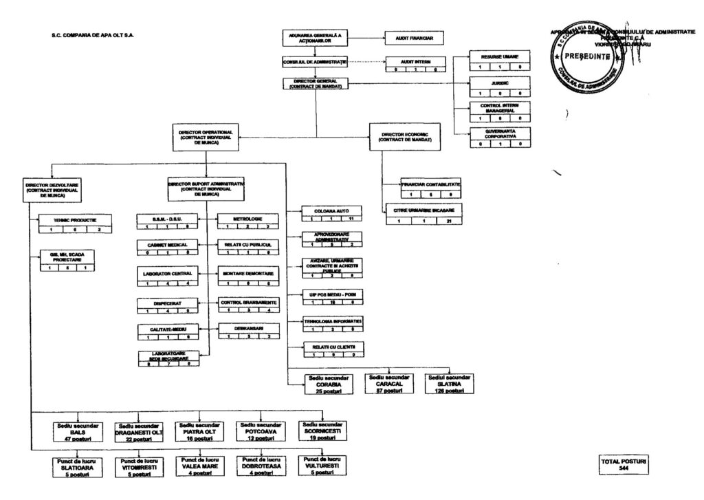 Organigrama prevede o situație excepțională pentru directorul operațional