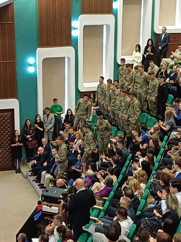 Este un privilegiu să reprezint medicina militară la această festivitate, pentru că azi nu voi vorbi doar despre medicina în sine, ci și despre rolul crucial pe care aceasta îl are în slujba patriei, a securității și a păcii. Decizia de a deveni medic presupune dobândirea unor cunoștințe și abilități, dedicare, empatie în raport cu ceilalți și, mai ales, angajamentul profund faptului de umanitate. Noi, ca viitori medici militari, aveam privilegiu și responsabilitatea de a interveni în momente de criză, de a salva vieți, de a adresa nevoile celor aflați în suferință.