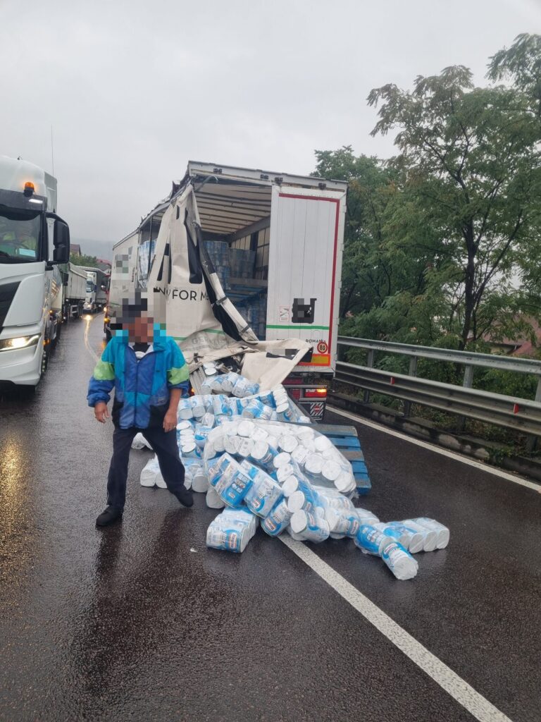Trafic îngreunat în această dimineață pe Drumul Național 7, în zona Baraj Nord din Râmnicu Vâlcea, după ce două autotrenuri au fost implicate într-un accident rutier.