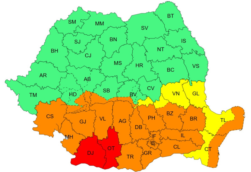 Administrația Națională de Meteorologie (ANM) a emis, joi, o avertizare Cod roșu de ploi abundente, valabilă din această seară până vineri seara în județele Dolj și Olt.