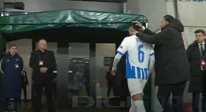 Mirel Rădoi a fost dezamăgit de Vlad Screciu, după ce apărătorul și-a faultat un adversar din poziție de ultim apărător și a fost eliminat. Antrenorul de la CSU Craiova i-a explicat jucătorului cum trebuia să procedeze și l-a avertizat în legătură cu faptul că astfel de gesturi îl pot costa un transfer în străinătate.