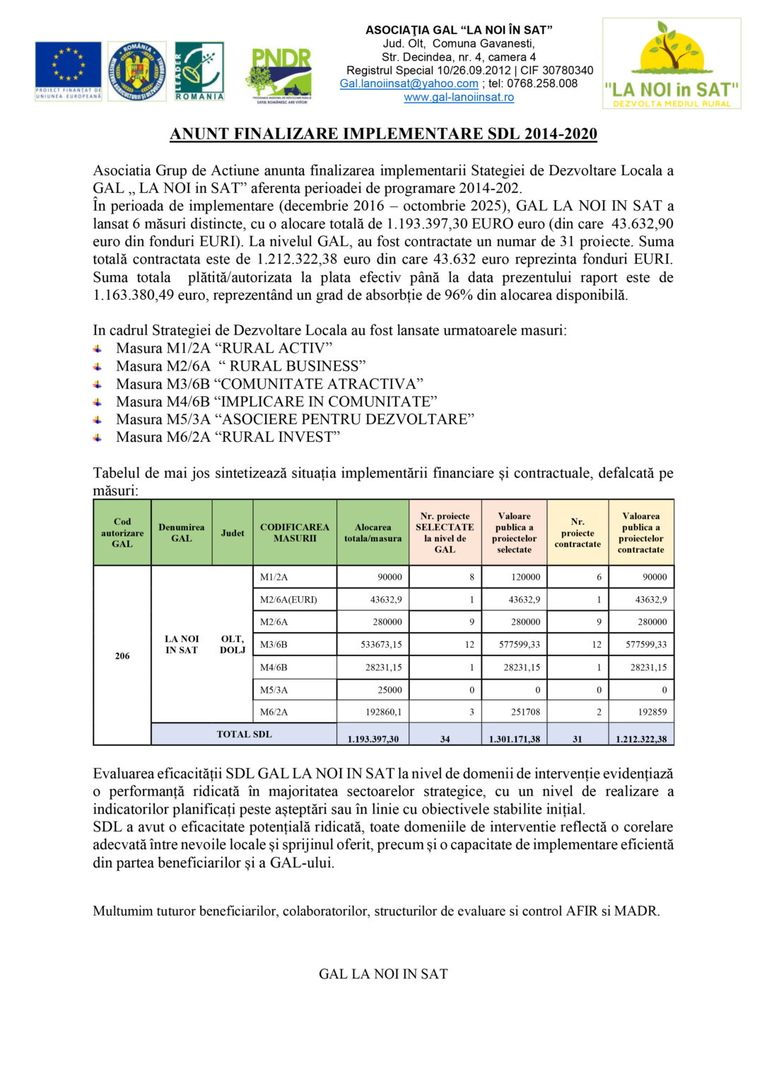 AnunturiAnunt finalizare implementare SDL 2014-2020 Jurnalul Olteniei 9 octombrie 2025 Share SHARE Jurnalul Olteniei See Full Bio Distribuie acest articol Facebook Whatsapp Whatsapp Email Copy Link Print Articolul precedent Facturile la electricitate cresc, din nou, începând cu această lună Articolul următor Semimaratonul Craiovei 2025 – Ediția care schimbă ritmul orașului! Ultima ora Testare gratuită HPV la Spitalul Județean Târgu Jiu 5 decembrie 2025 CE Oltenia raportează emisii scăzute de dioxid de carbon 5 decembrie 2025 DIICOT a destructurat un grup de proxenetism în Mehedinți 5 decembrie 2025 Legea pensiilor magistraților, atacată, din nou, la CCR 5 decembrie 2025 Magia Crăciunului Târgu Jiu: Seară de neuitat 5 decembrie 2025 A dat bancnote false cu „Prop Copy”: Percheziții în Mehedinți 5 decembrie 2025 Căprioare și ponei, de Crăciun, în Parcul Romanescu 5 decembrie 2025 Gorj: agresori reținuți și monitorizați electronic 5 decembrie 2025 Suspect de tentativă de agresiune reținut de Poliția Dolj 5 decembrie 2025 Locuință din Gorj cuprinsă de flăcări 5 decembrie 2025