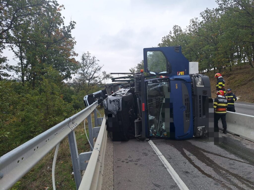 Detașamentul de Pompieri Drobeta Turnu Severin a intervenit de urgență, joi dimineață, pe raza localității Balota, comuna Prunișor, Mehedinți, pentru gestionarea unui accident rutier. Un TIR care transporta autoturisme s-a răsturnat pe carosabil.
