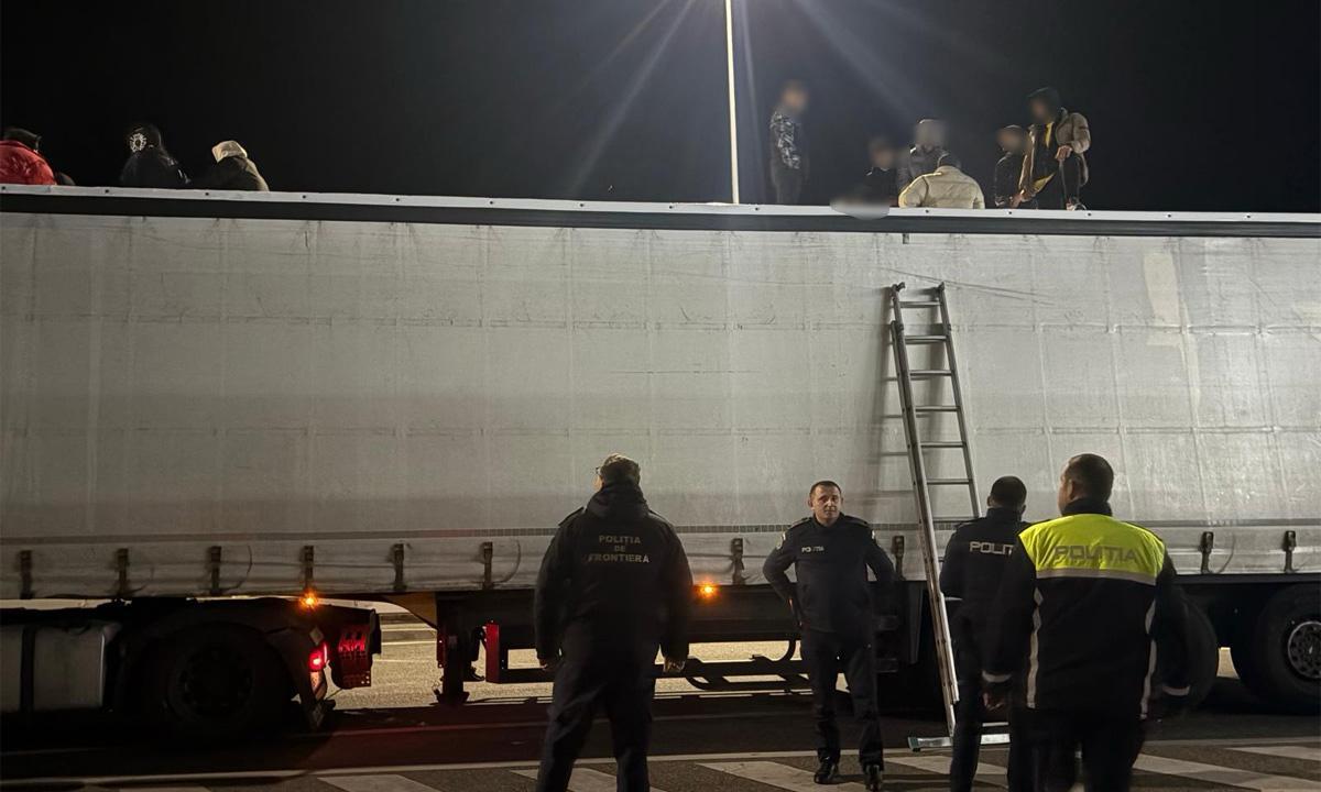 „Polițiștii de frontieră din cadrul Inspectoratului Teritorial al Poliției de Frontieră Giurgiu – Sectorul Poliției de Frontieră Calafat, în cooperare cu omologii bulgari, au depistat 38 cetățeni străini care au încercat să intre ilegal în România, ascunși în compartimentul de marfă al unui automarfar.