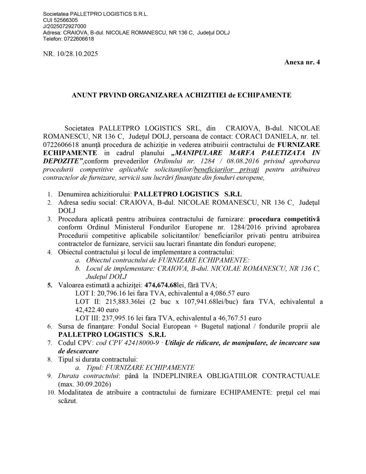 AnunturiAnunt privind organizarea achizitiei de echipamente Jurnalul Olteniei 28 octombrie 2025 Share SHARE Jurnalul Olteniei See Full Bio Distribuie acest articol Facebook Whatsapp Whatsapp Email Copy Link Print Articolul precedent Anunt privind organizarea achizitiei de echipament – autobasculanta Articolul următor O doctoriță de 37 de ani, găsită moartă în spital Ultima ora Dolj: Ajutoare sociale de peste 76 milioane lei 5 decembrie 2025 Cea de-a VII-a ediție a Semimaratonului Craiovei a avut loc sâmbătă, 18 octombrie 2025. 5 decembrie 2025 ANUNT PRIVIND ORGANIZAREA ACHIZITIEI DE UTILAJE . MINIEXCAVATOR – LOTUL 1, UTILAJ DE FORAT HIDRAULIC – LOTUL 2 – RELUATÃ 2 5 decembrie 2025 Modernizarea CF Filiași: Începe proiectarea 5 decembrie 2025 Testare gratuită HPV la Spitalul Județean Târgu Jiu 5 decembrie 2025 CE Oltenia raportează emisii scăzute de dioxid de carbon 5 decembrie 2025 DIICOT a destructurat un grup de proxenetism în Mehedinți 5 decembrie 2025 Legea pensiilor magistraților, atacată, din nou, la CCR 5 decembrie 2025 Magia Crăciunului Târgu Jiu: Seară de neuitat 5 decembrie 2025 A dat bancnote false cu „Prop Copy”: Percheziții în Mehedinți 5 decembrie 2025