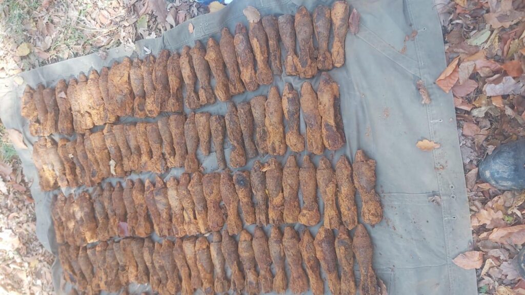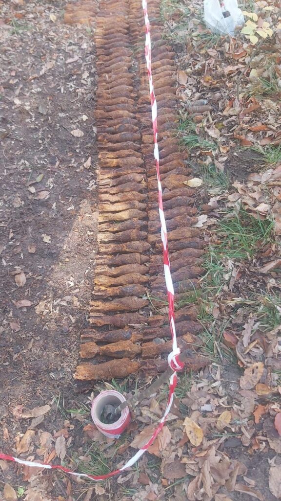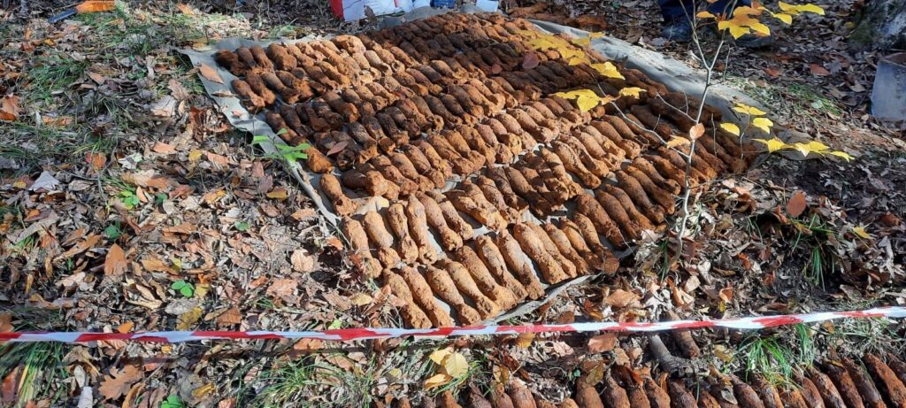 Pe durata intervenției, desfășurate în zilele de 1 și 2 noiembrie, echipa pirotehnică a extras aproximativ 600 de bombe de aruncător de calibrul 50 mm, în jur de 70 de cartușe de calibrul 6,50 mm, două proiectile explozive de calibrul 37 mm și un proiectil cumulativ de calibrul 100 mm. Toate aceste elemente provin din Primul Război Mondial.
