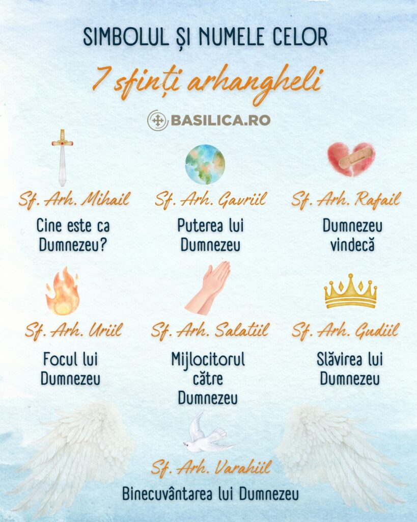 În credința ortodoxă, Arhanghelul Mihail, al cărui nume în limba ebraică înseamnă „Cine este ca Dumnezeu?”, a fost conducătorul oștilor cerești, iar Arhanghelul Gavriil, cunoscut și ca Gabriel, este cunoscut drept cel care i-a spus Fecioarei Maria că va naște pe pruncul Iisus Hristos Mântuitorul și cel care le-a adus credincioșilor Ioachim și Ana vestea zămislirii Maicii Domnului, potrivit crestinortodox.ro.