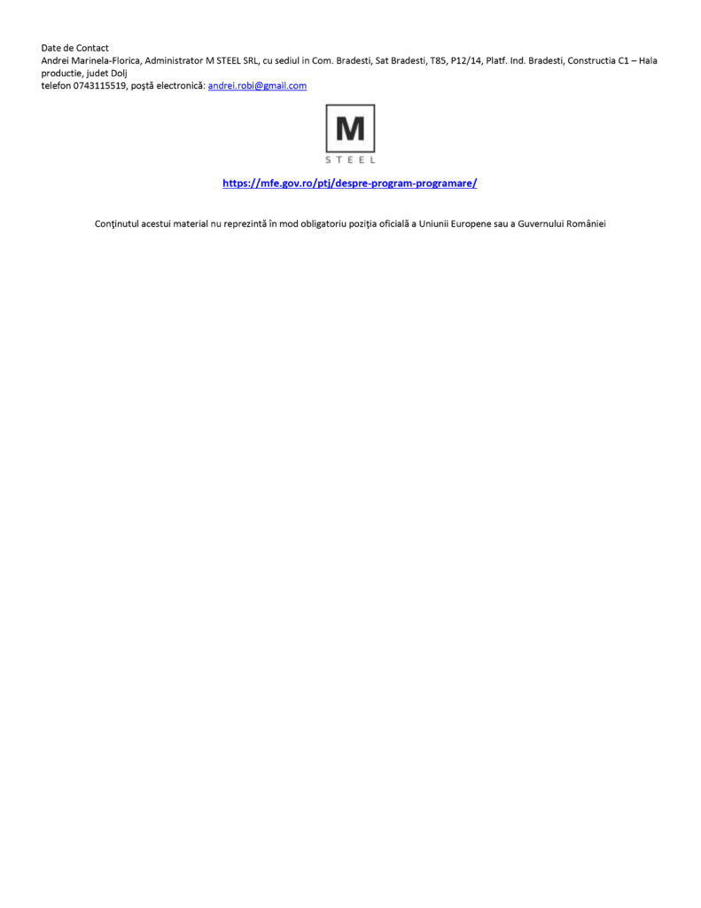 Diversificarea activitatii SC M STEEL SRL prin achizitia de utilaje