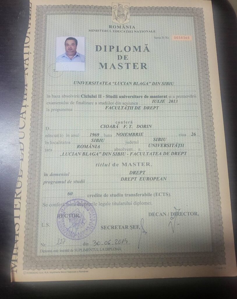 ”Oare sunt singurul din clasa politica care are Diplome pe bune”, se întreabă, ironic, Cioaba Dorin.