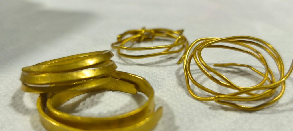 Este vorba de 5 brățări din aur, care au fost deja predate Muzeului Judeţean „Alexandru Ştefulescu” din Târgu Jiu.