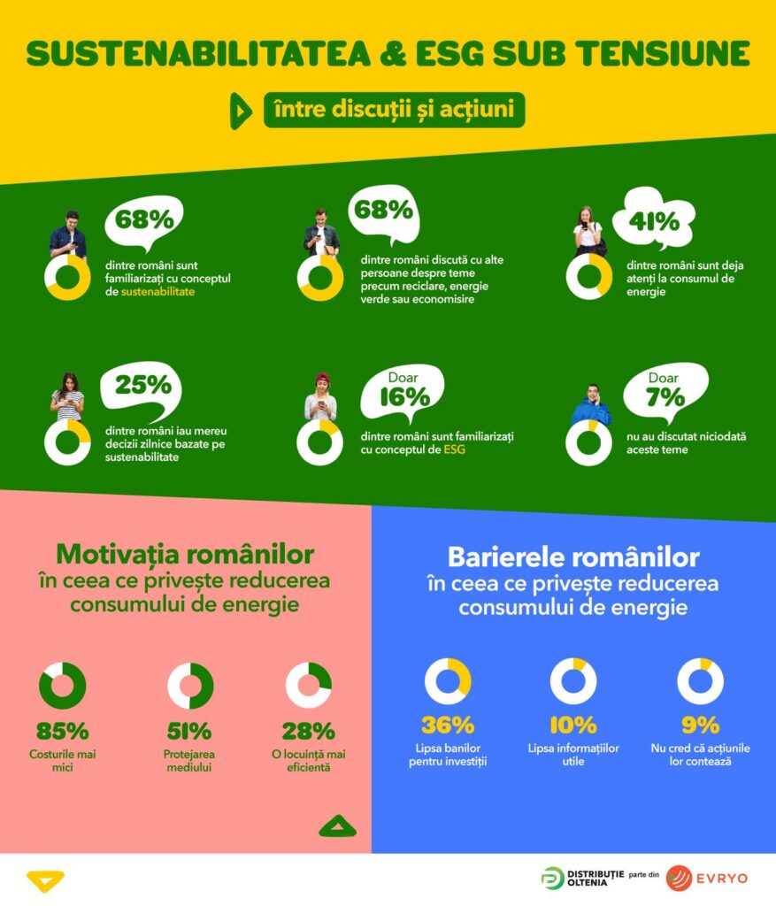 Un nou studiu realizat de Distribuție Oltenia arată că, deși românii vorbesc tot mai des despre energie și sustenabilitate, termenul ESG rămâne foarte puțin cunoscut. Jumătate dintre oameni nu a auzit niciodată de acest termen.