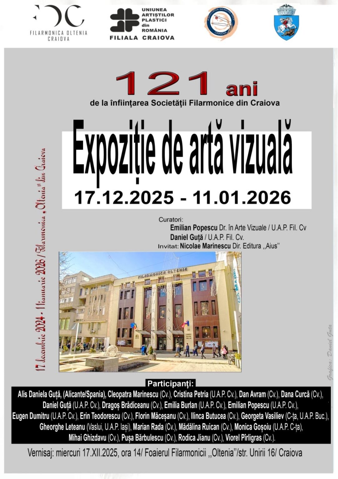 În suita evenimentului 121 ani de la înfiinţarea Societăţii Filarmonice din Craiova, sub auspiciile Primăriei Craiova și Consiliului Local, ale Filialei Dolj a Uniunii Artiştilor Plastici din România, în parteneriat cu Filarmonica „Oltenia”, Asociaţia Seniori Art Craiova